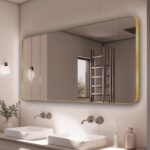 Oglindă cu cadru din aluminiu auriu CLASIC R Gold (fără iluminare ): o combinație de stil modern high-tech și materiale de înaltă calitate. Rama din aluminiu anodizat protejează oglinda pe perimetru. Grosimea structurii este de 20 sau de 40 mm.