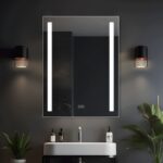 Oglindă cu iluminare LED ROAD.Două benzi luminoase verticale de-a lungul marginilor laterale ale produsului strălucesc puternic și uniform, luminând bine fața și fără umbre pe ea. Grosimea structurii este de 25 mm.